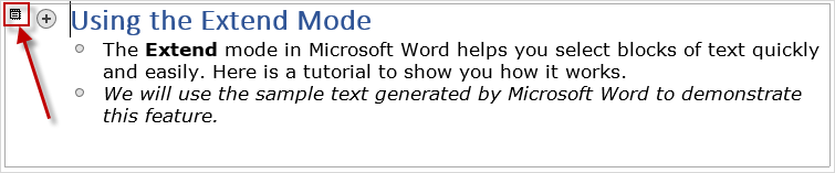 - Click the + next to the title Using the Extend Mode. This will select the title and all contents under it.